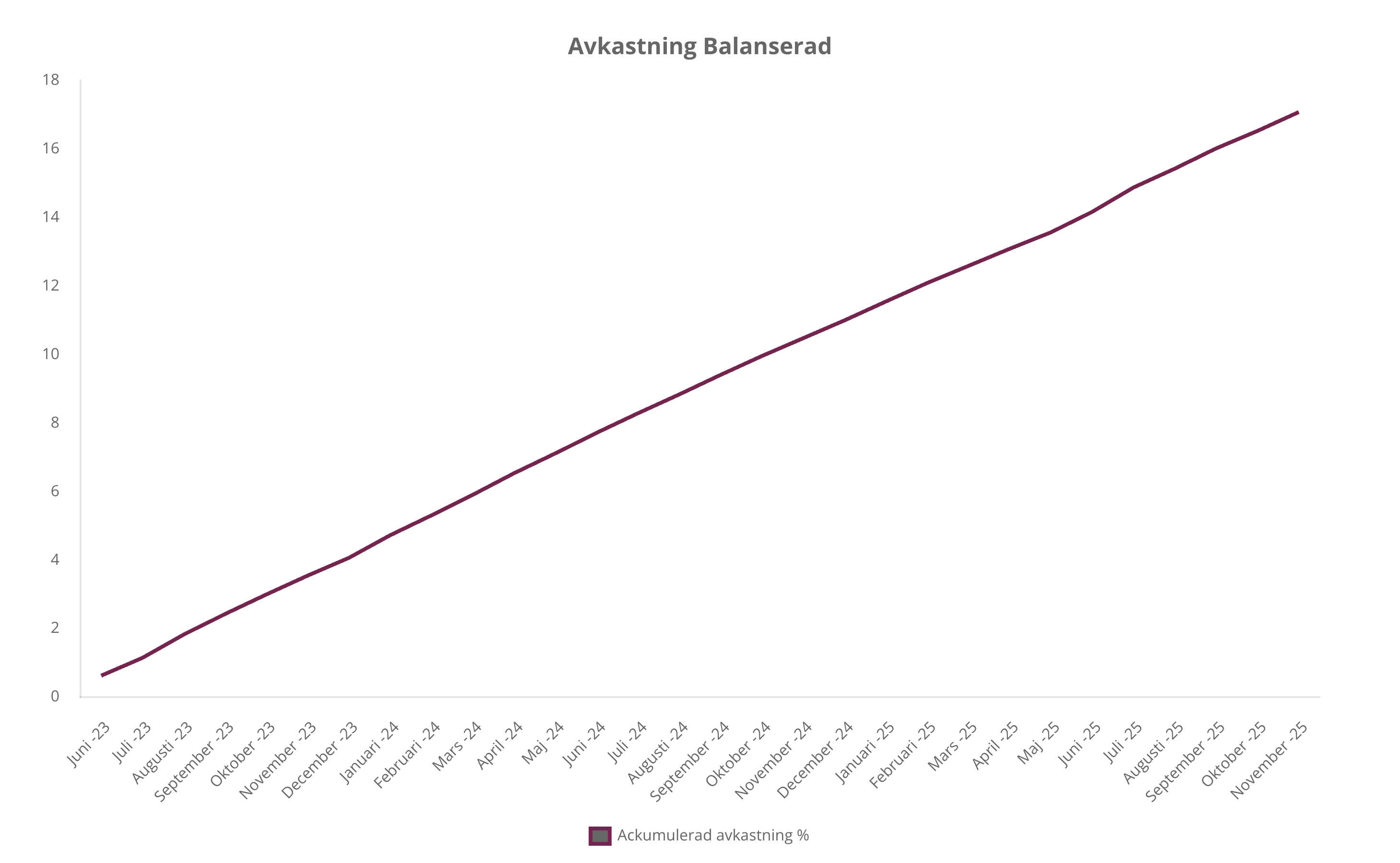 Den genomsnittliga ackumulerade avkastningen för sparstrategierna sedan start i juli 2023 uppgår till 17,08 % för Balanserad och 19,39 % för Yield, efter kreditförluster och före skatt. Strategierna har ingen månad med negativ avkastning.