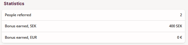The bonus is paid for both SEK- and EUR-accounts. You can easily see paid bonuses and the number of invited friends on your account in the same section: