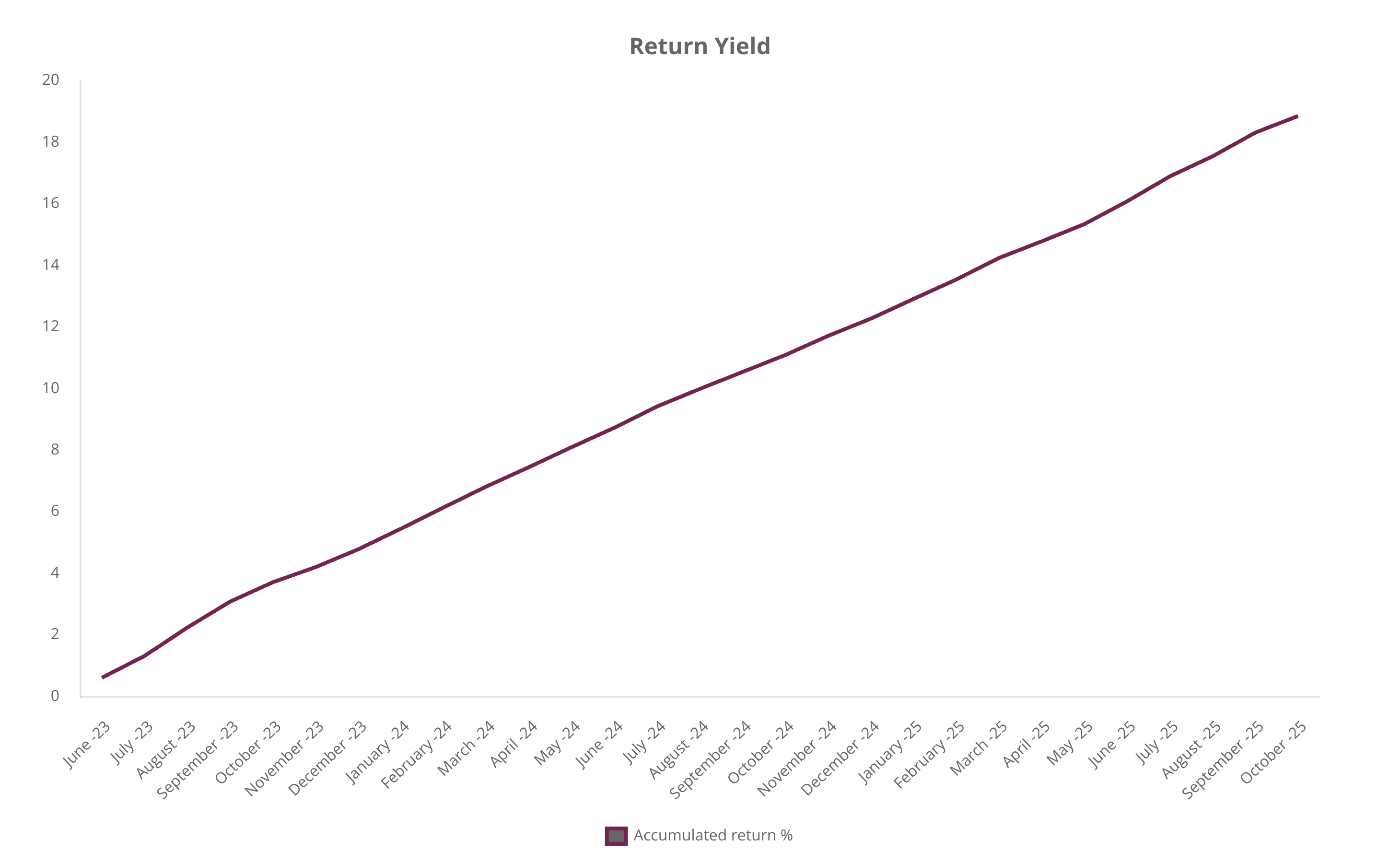 The average accumulated return since inception amounts to 18.85% – after credit losses and before taxes. The strategy has not recorded a single month of negative returns.