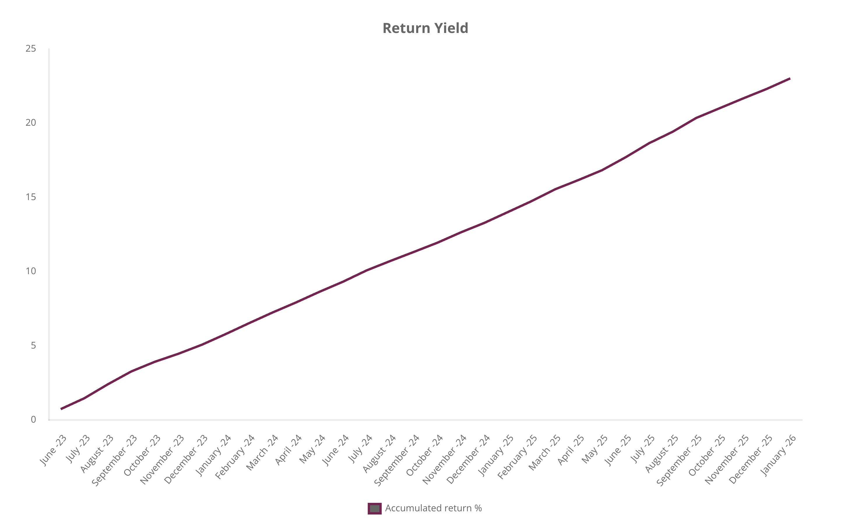 The average rolling 12-month return is 7.91% – net of credit losses and fees, and before tax. Since the savings strategy was launched in June 2023, the cumulative average return has amounted to 23.02%. The strategy has had no months with negative returns.